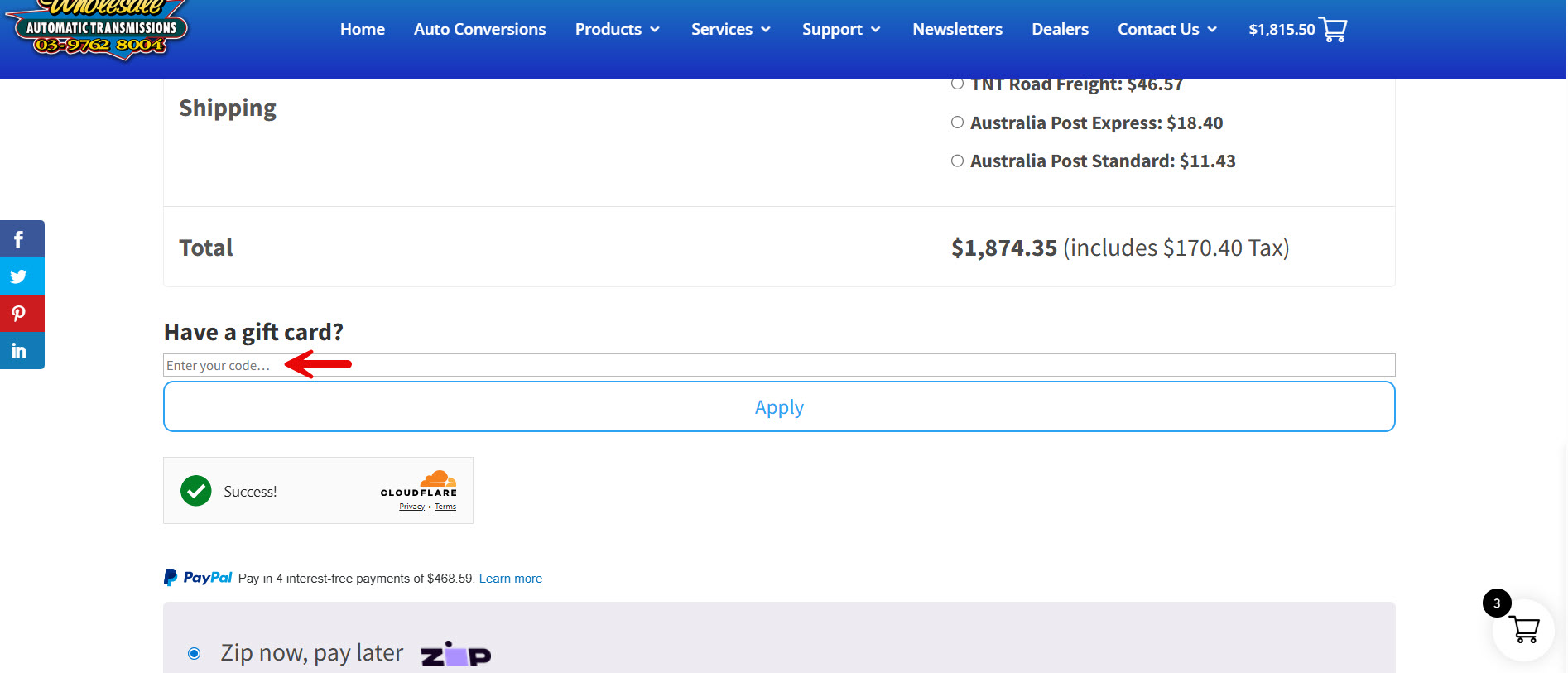 Our gift cards are designed to be redeemed online. Please note when redeeming the gift card the spot to enter the voucher code is near the bottom of the checkout page under the heading that says “Have a gift card?”. Example: